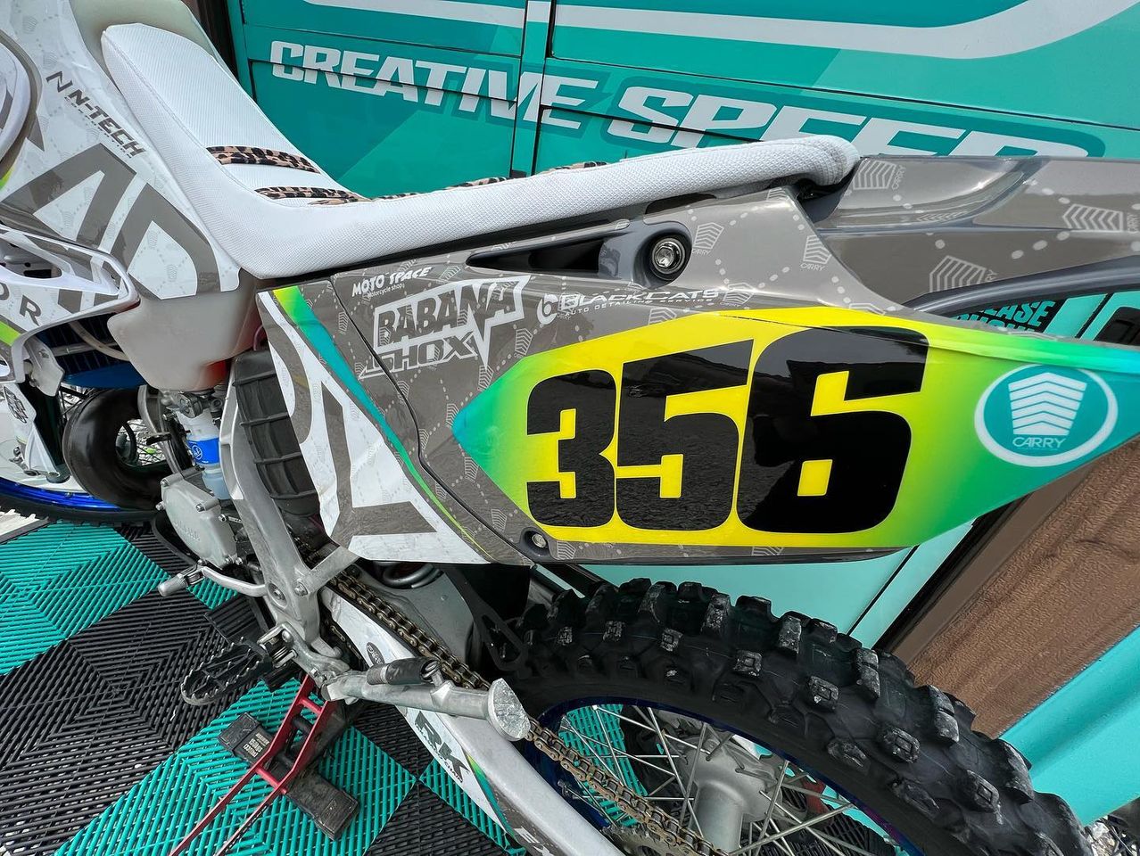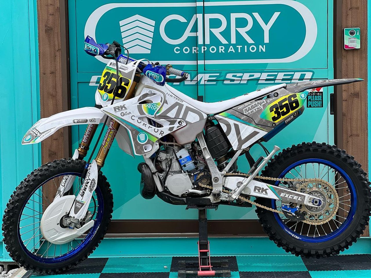 RKチェーン&CARRYグラフィックで彩ったカスタム満載のデモ車両展示やプリントジャージのプロモーション、アパレルなどの販売を行います!