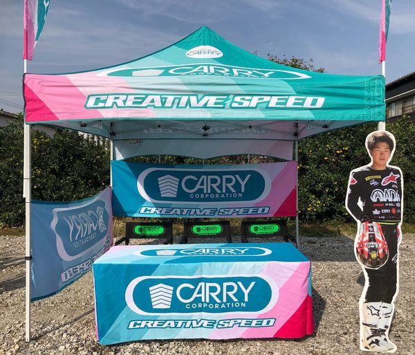 CARRYデカール装着マシンの展示をはじめ、ジャージプリント、ヘルメットの展示やアパレル販売などを行う予定です!