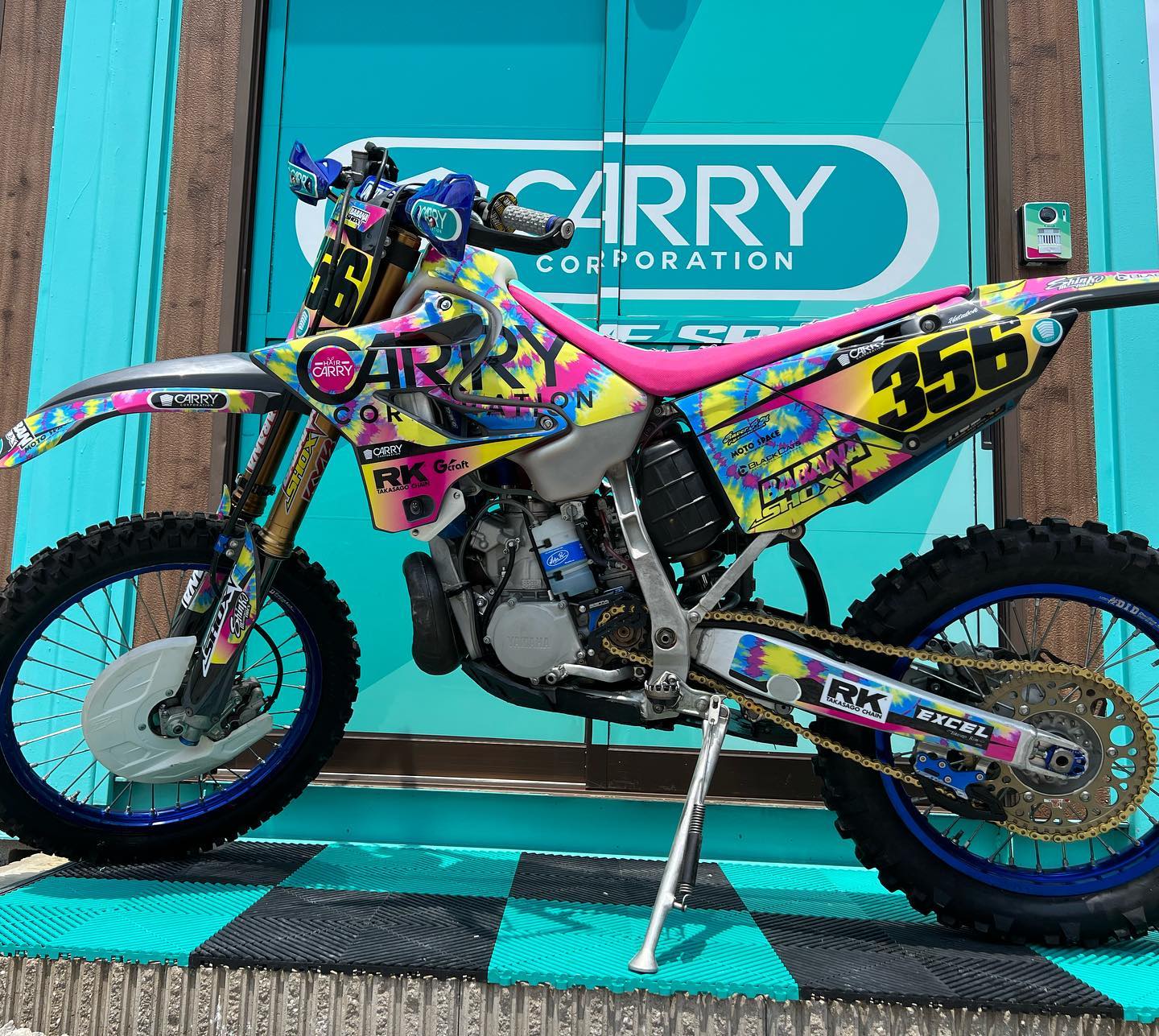 RKチェーン&CARRYグラフィックで彩った、超ド派手なデモ車両展示や、プリントジャージのプロモーション、アパレルなどの販売を行います!
